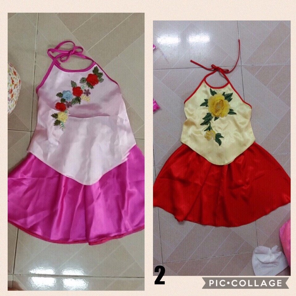 Hình 4: dài thượng hải bé gái: số 1 = 110 nhảy 5 từ 1 đến 10 đỏ,vàng,cánh sen,cam.2 kiểu cổ: 1 không cổ, 1 cổ tròn